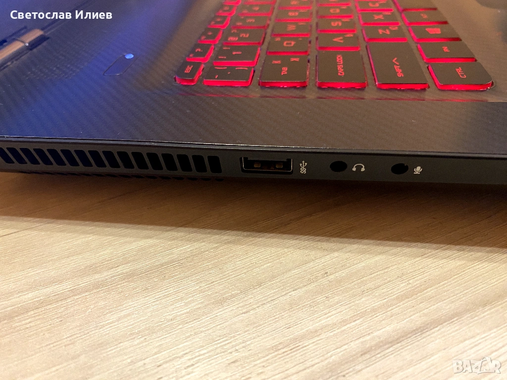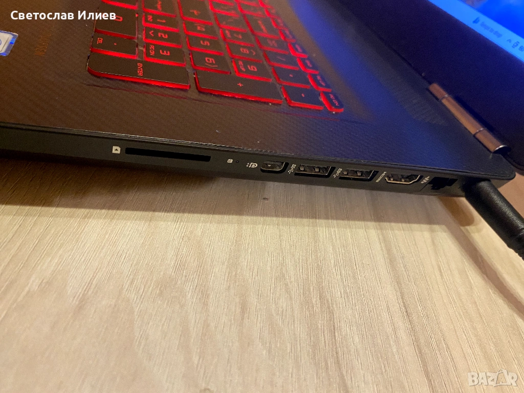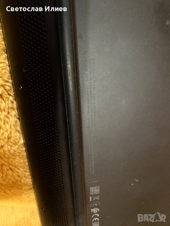 Важно: Лаптопът работи само на зарядно, батерията не функционира. Това не влияе на работата му при използване на бюро или за игри