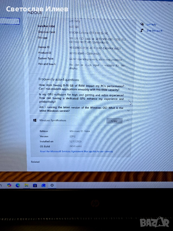 Продавам геймърски лаптоп HP Omen в много добро състояние и напълно изряден.