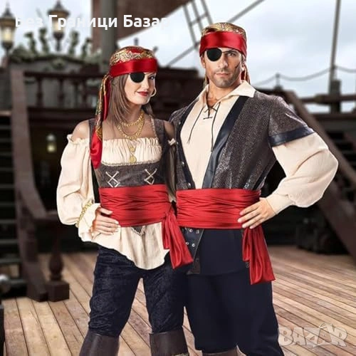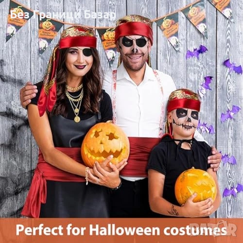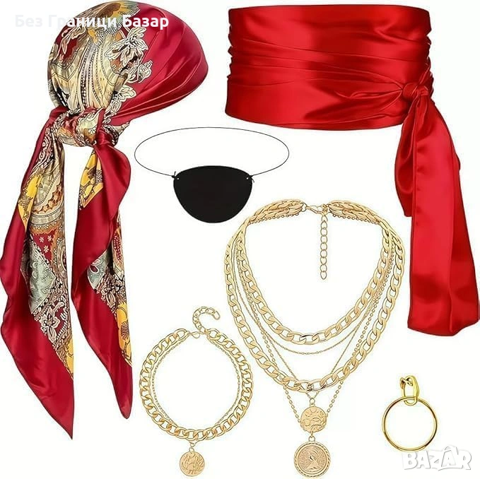 Червена кърпа за глава и пояс за автентична пиратска визия