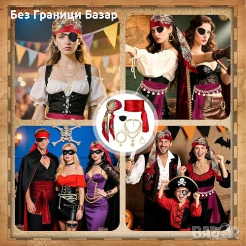 Пиратски комплект с 6 аксесоара за тематични партита и косплей