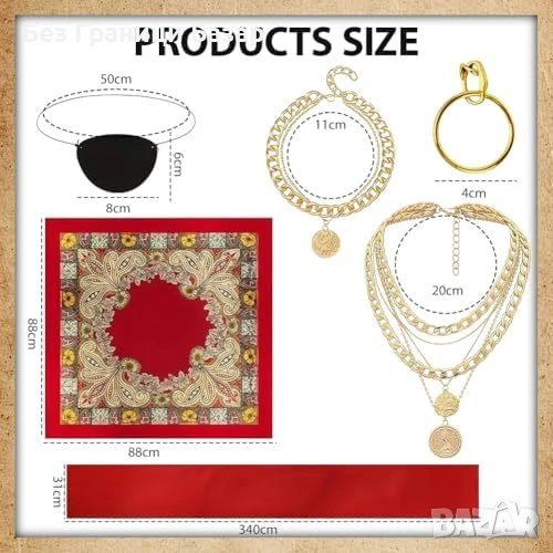 Нови Пиратски аксесоари комплект 6 части бандана колие обеца пояс