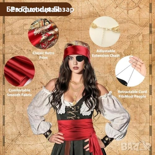 Превръзка за око и декоративна обеца за класически пиратски стил