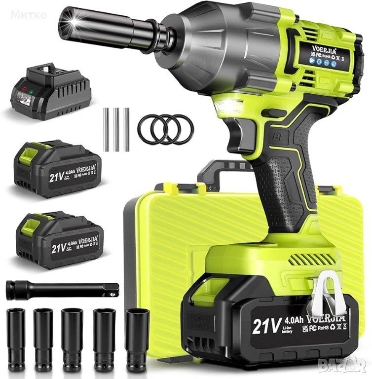Безжичен ударен гайковерт 1/2 инча, 1000Nm безчетков ударен пистолет с висок въртящ момент, комплект