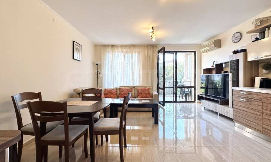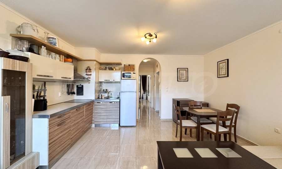 Жилището е напълно обзаведено и оборудвано с мебели и електроуреди, готово за незабавно нанасяне. Подходящо е както за лично, целогодишно ползване, така и за инвестиция.