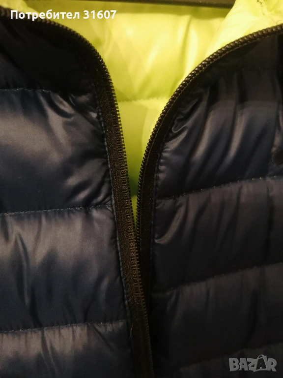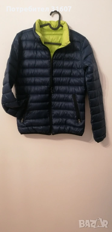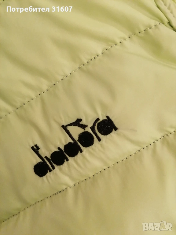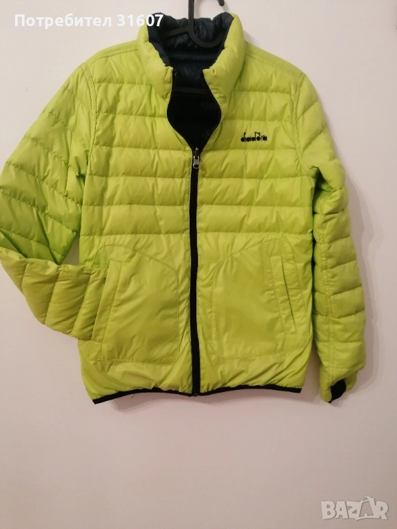Страхотно дамско/юношеско яке Diadora, идеално за пролетта и есента. Якето е изключително практично, тъй като е двулицево – може да се носи в класическо тъмносиньо или в модерен и ярък цвят лайм (неоново зелено).Олекотено, тип "пухенка" с хоризонтални шевове.Здрави ципове, два джоба от всяка страна, бродирано лого на светлата страна. Ветроустойчива и лесна за поддръжка. Подходящо както за спорт, така и за ежедневието.