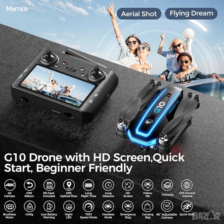 G10 GPS дрон с 4K HD камера за възрастни, 4.5-инчов HD екран на дистанционно управление, FPV RC дрон