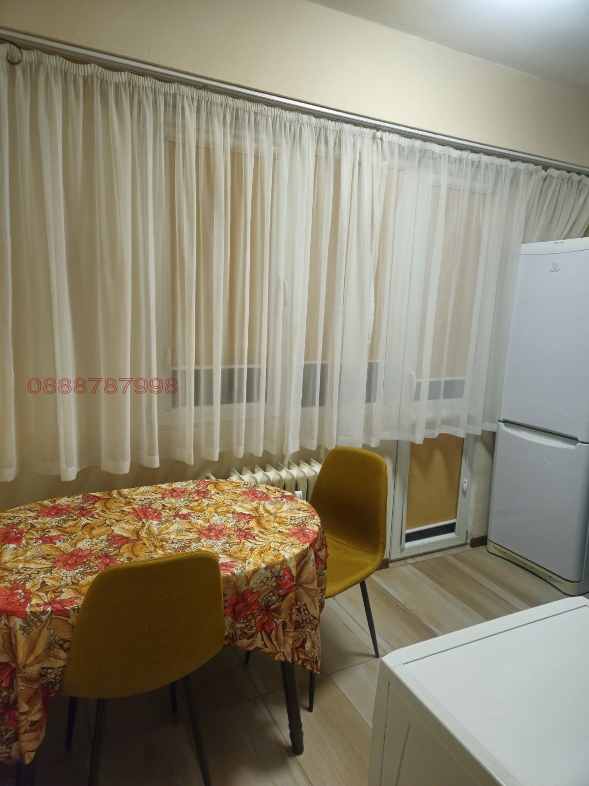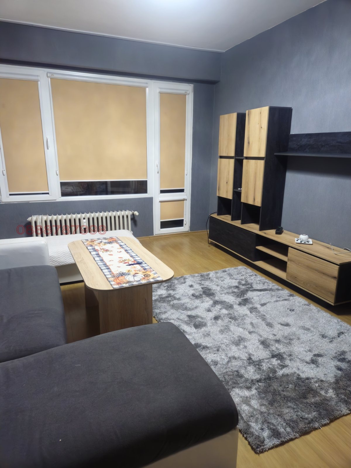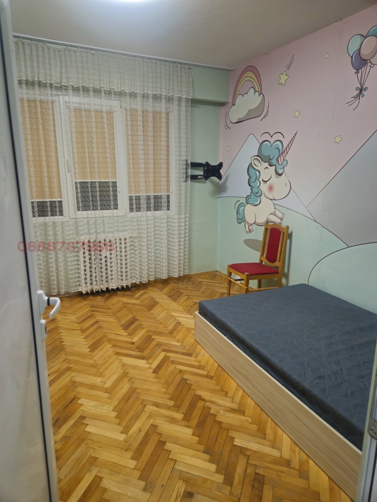 Разпределение: Входно предверие, отделни баня и тоалетна, също така в дъното на коридора има голям килер, обзаведен с гардероби за складиране, просторна всекидневна, кухня с трапезария и спалня (детска стая). Всички стаи имат излаз на един доста голям балкон.