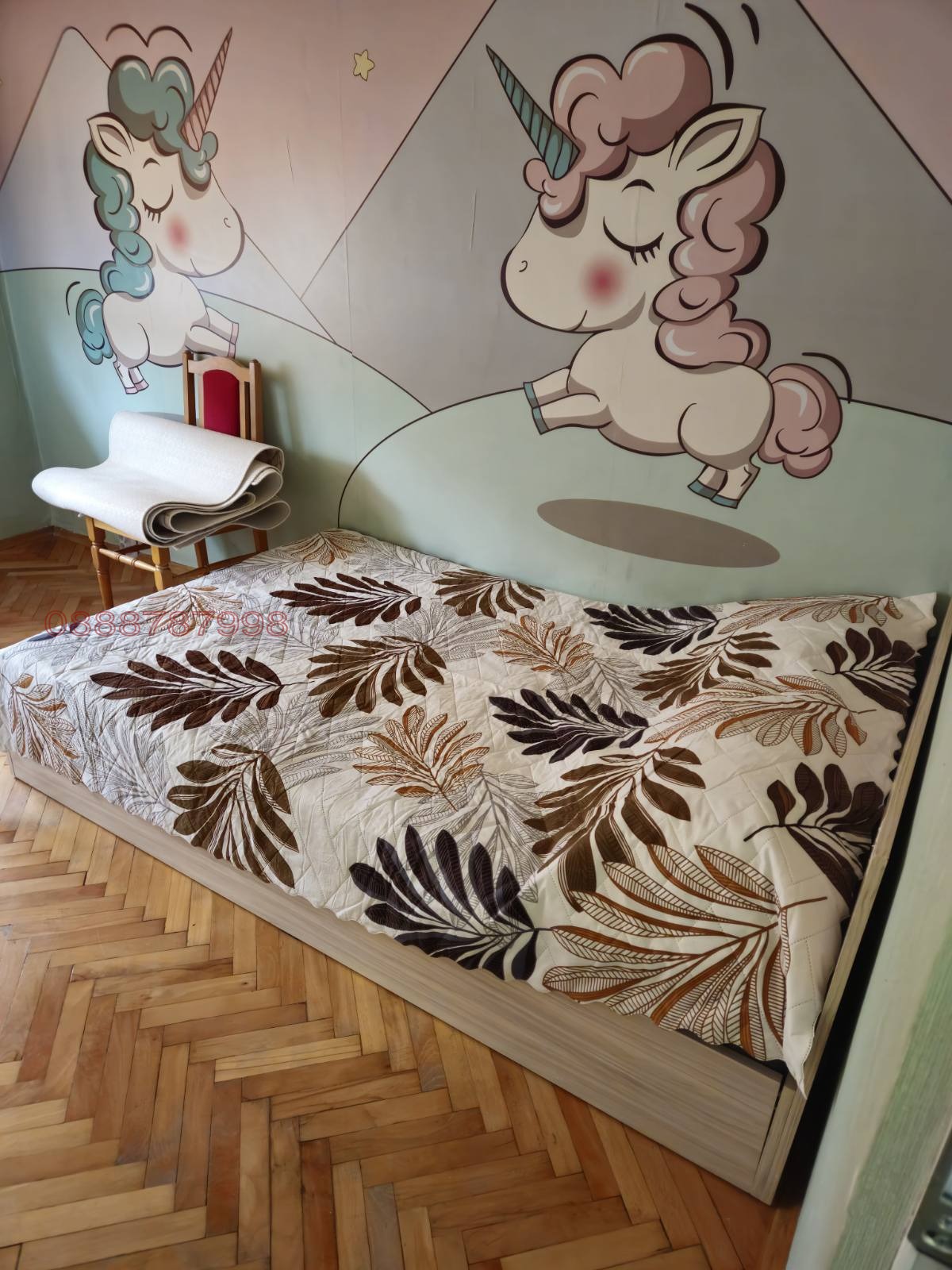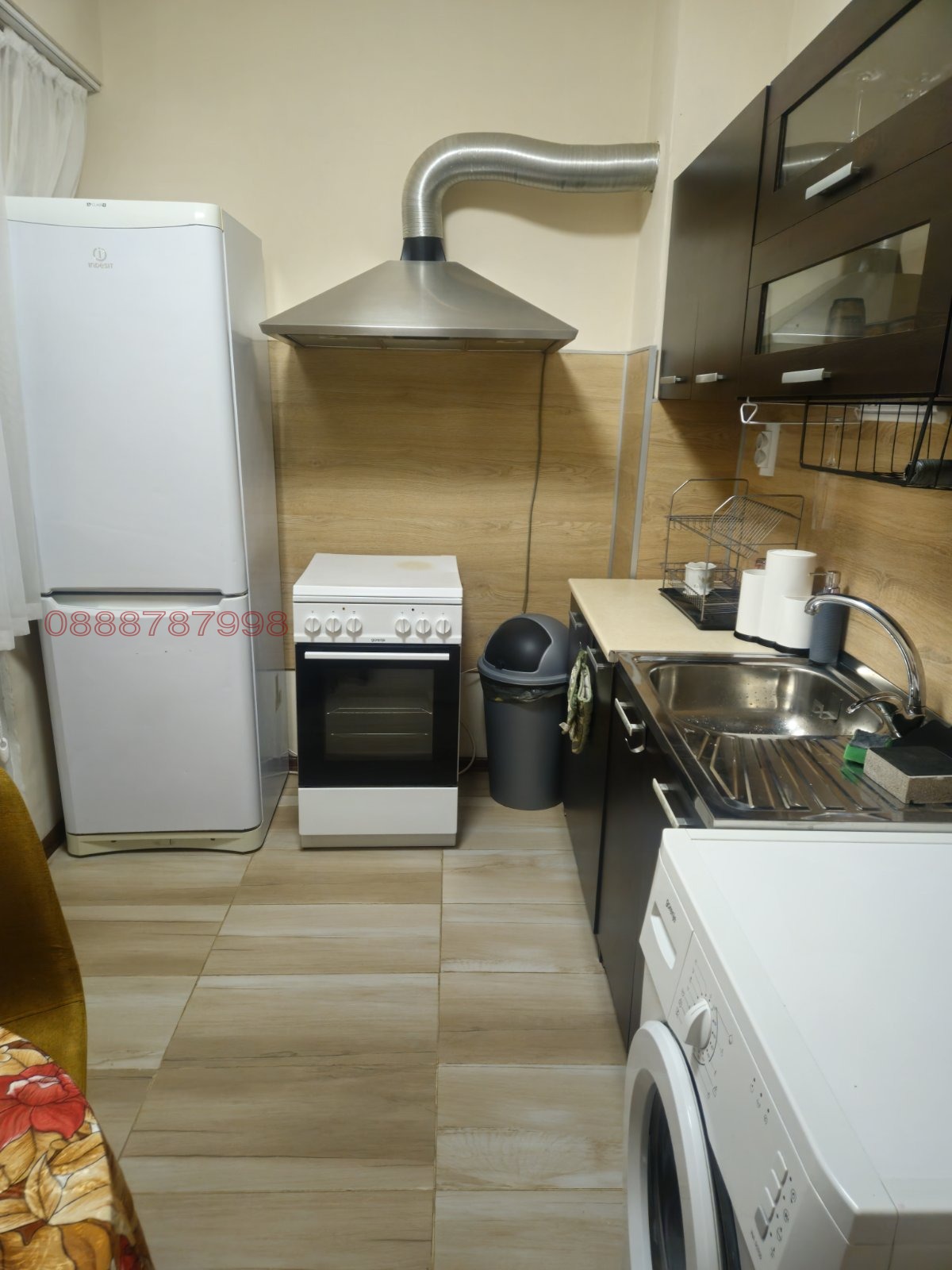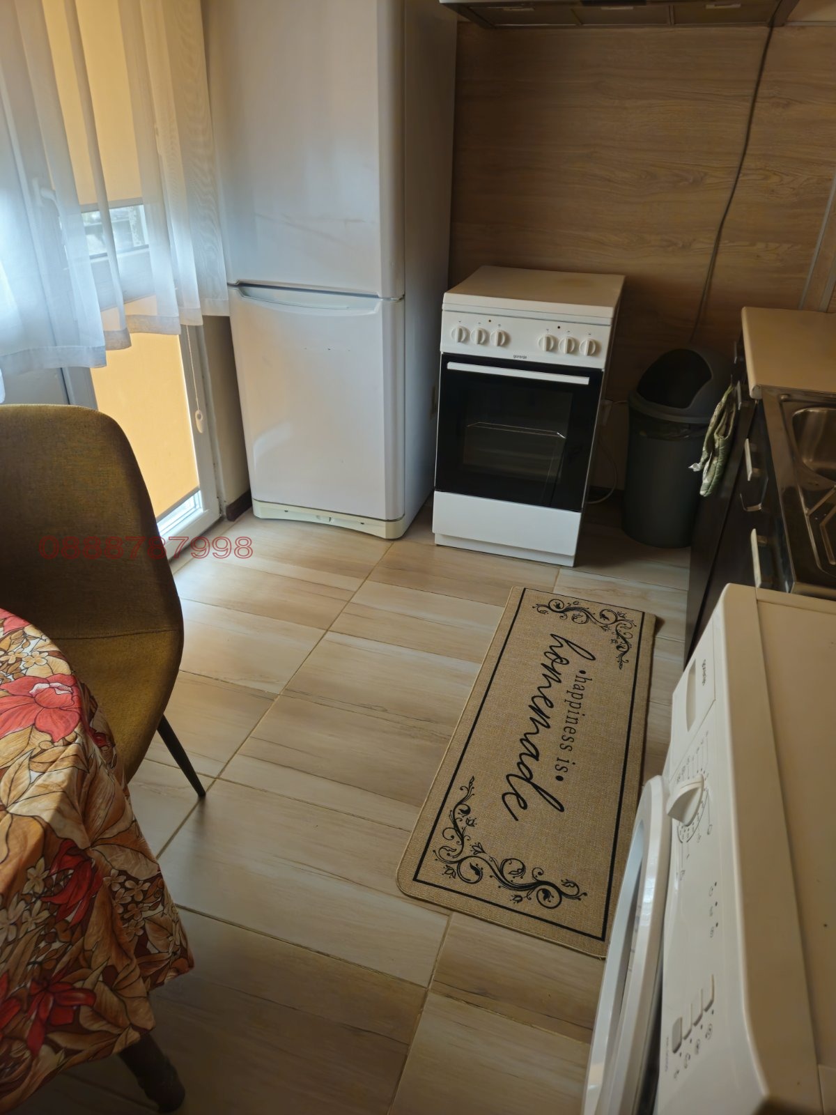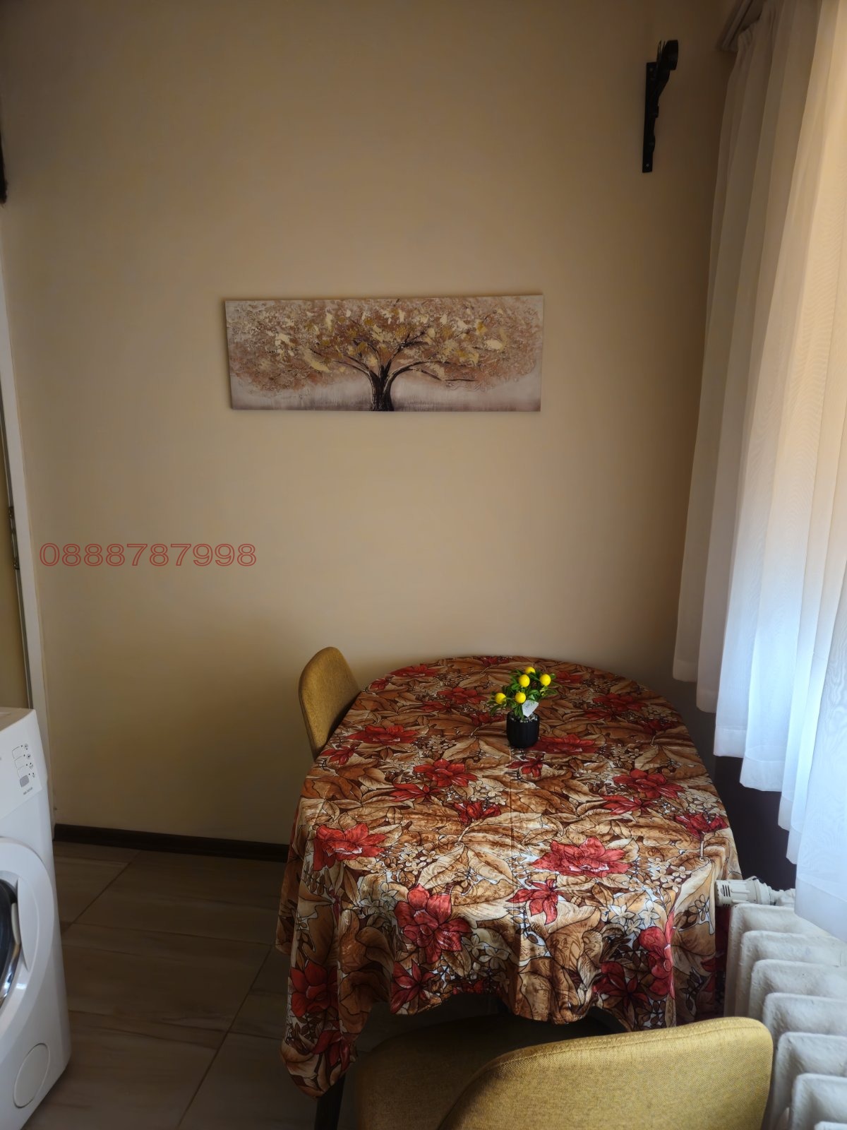 Разпределение: Входно предверие, отделни баня и тоалетна, също така в дъното на коридора има голям килер, обзаведен с гардероби за складиране, просторна всекидневна, кухня с трапезария и спалня (детска стая). Всички стаи имат излаз на един доста голям балкон.