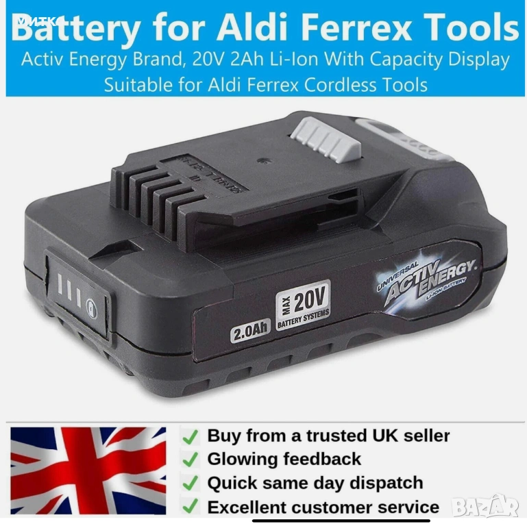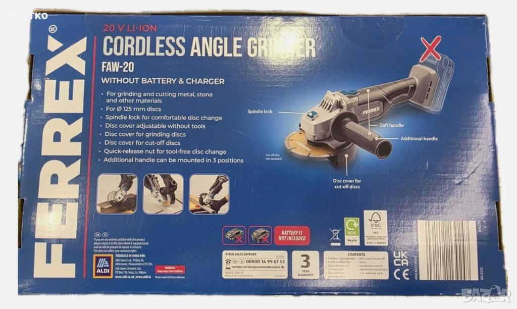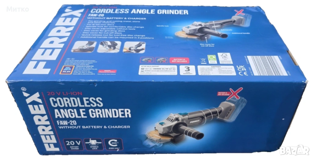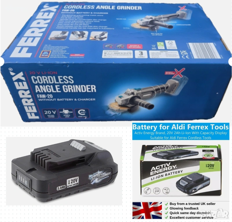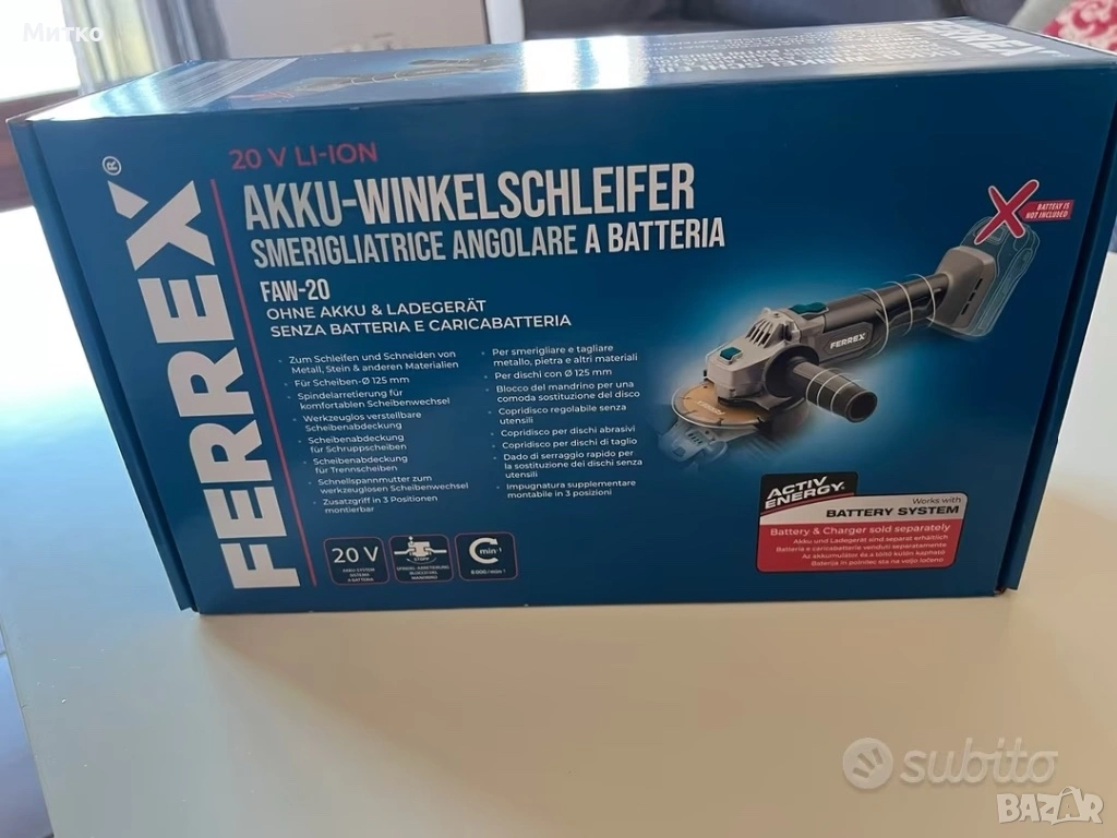 Ferrex 20V акумулаторен ъглошлайф FAW-20 + батерия Activ Energy 2.0Ah - и зарядно → Обява 53964065