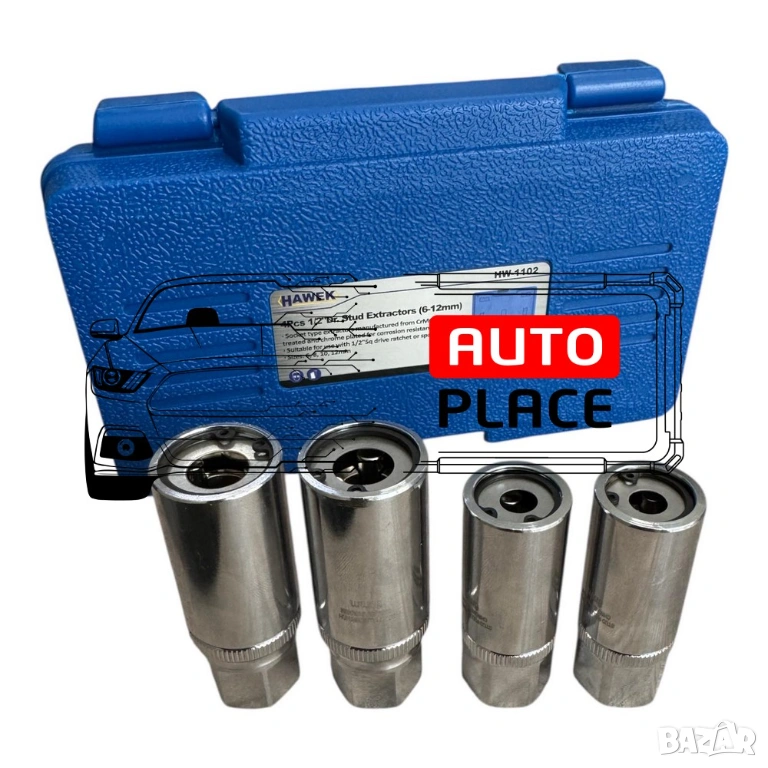 Комплект екстрактори за шпилки 4 части 6 – 12 мм 1/2″ – Вложки шпилковадачи HAWEK