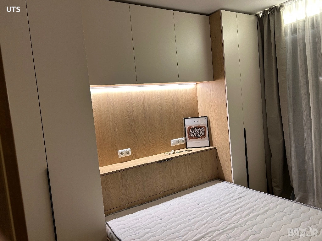 Жилището е напълно обзаведено с мебели по поръчка, функционално и оборудвано с всички необходими електроуреди.