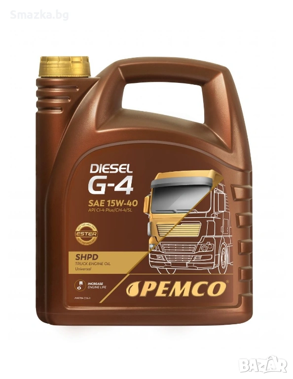 Добавените присадки подобряват антиокислителната и диспергиращата способност, намалявайки риска от нагари и сажди по двигателните компоненти. PEMCO DIESEL G-4 SHPD намалява износването на цилиндровите стени и буталните пръстени, подпомага стабилната работа на турбокомпресора и увеличава живота на двигателя.