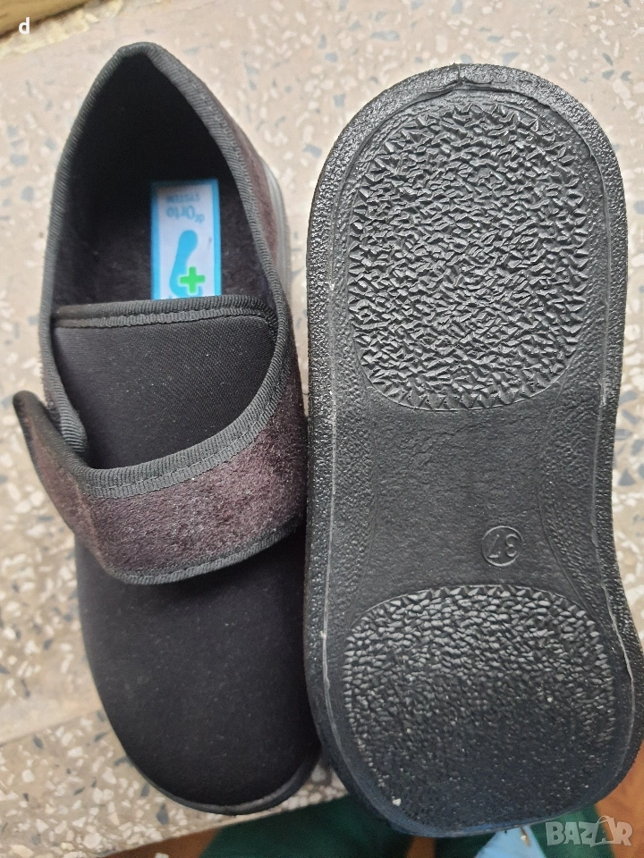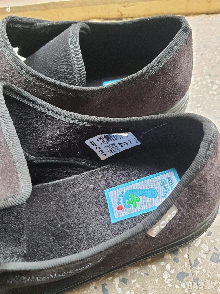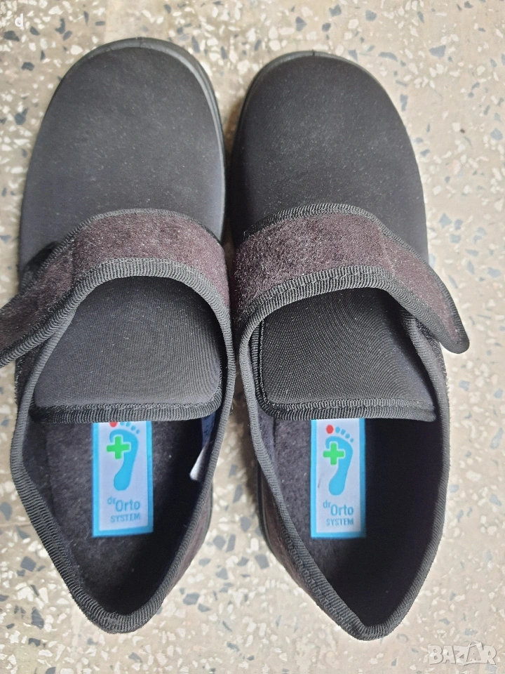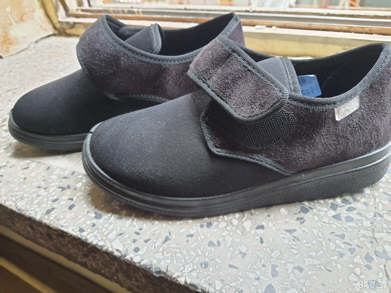 привет,предлагам и изпращам по еконт 37эномер, 24,4 см стелка за всички сезони Oртопедични обувки Др.Орто за проблемни крака в черен цвят. Кройката и еластичената им горна част, ги прави изключително подходящи за хора страдащи от синдром на диабетното стъпало, засегнати от ревматоидни промени на стъпалата, с деформирани пръсти hallux valgus, пръст чукче и изменения в метатарзалната област. Притежават гъвкава и противоплъзгаща подметка, поглъщаща ударната вълна, възникнала след контакта на стъпалото със земята, което предпазва от микротравми. Подплатата е направена от мекия текстилен материал Silber. Той е произведен по специална технология въз основа на сребърни йони. Предимства на материала Silber Притежава антигъбични и антибактериални свойства. Потиска развитието на микроорганизми и осигурява антимикробна защита. Неутрализира неприятни миризми във вътрешността на обувката. Има противоалергични свойства Осигурява термичен комфорт и поддържа оптимална телесна темпартаура около 37 градуса. Абсорбира влагата и гарантира максимално предпазване при дълготрайна употреба Възможност за поставяне на индивидуална стелка.