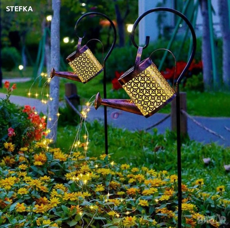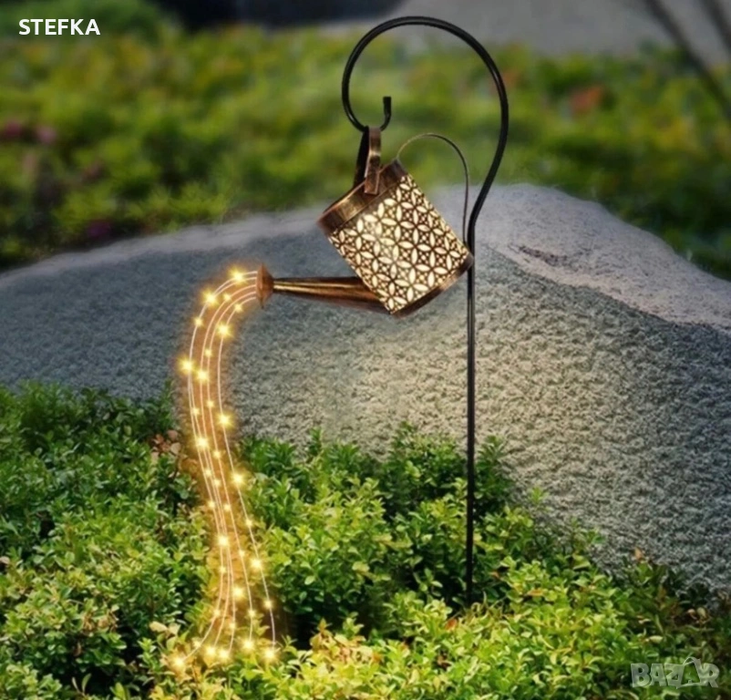 соларна лампа със светлинни спринклери – ефект „водопад“, 60 LED, топла бяла светлина