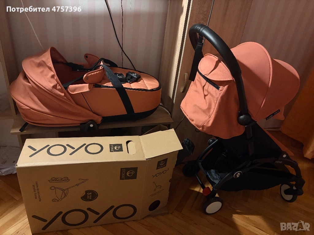 Yoyo 3 шаси (до 22кг, багажник до 10кг) кош (0-6 до 9кг) седалка 6+м до 22кг.) количката е ползвана за пътуване предимно малко пъти, тъй като се сгъва много лесно и заема малко място. Много маневрена лесна за носене дори по стълби. Седалката 6+ никога не е ползвана. Количката има още 2 години и половина гаранция пазя и касовата бележка, която ще бъде дадена на купувача+ кашона от количката. Разполагам с адаптори за кош стандарт Maxi Cosi за кола за 95 лв. Всичко e почти ново. Мога да продавам и отделно. Шасито е 700лв. Кошът е 400лв. ( идва със свои адаптери включени), седалката 6м + за 110 лв.
