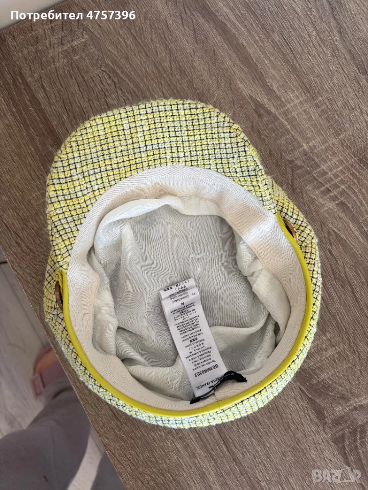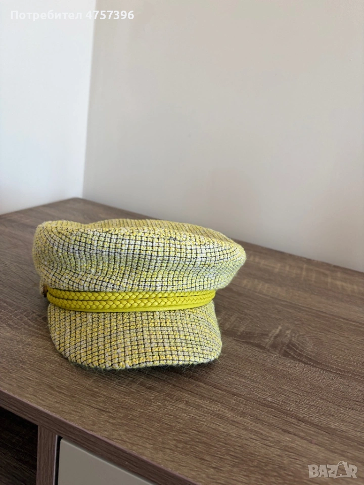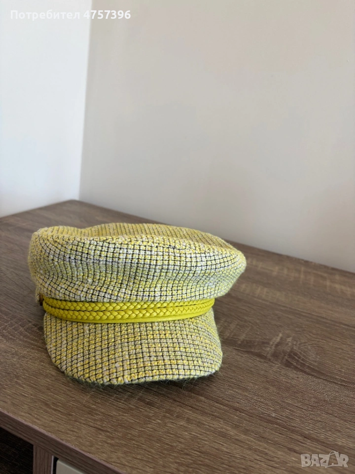 Стилна шапка Elisabetta Franchi 56 см не е носена навън , но съм я пробвала вкъщи. Цветът е много хубав между жълто и зелено.