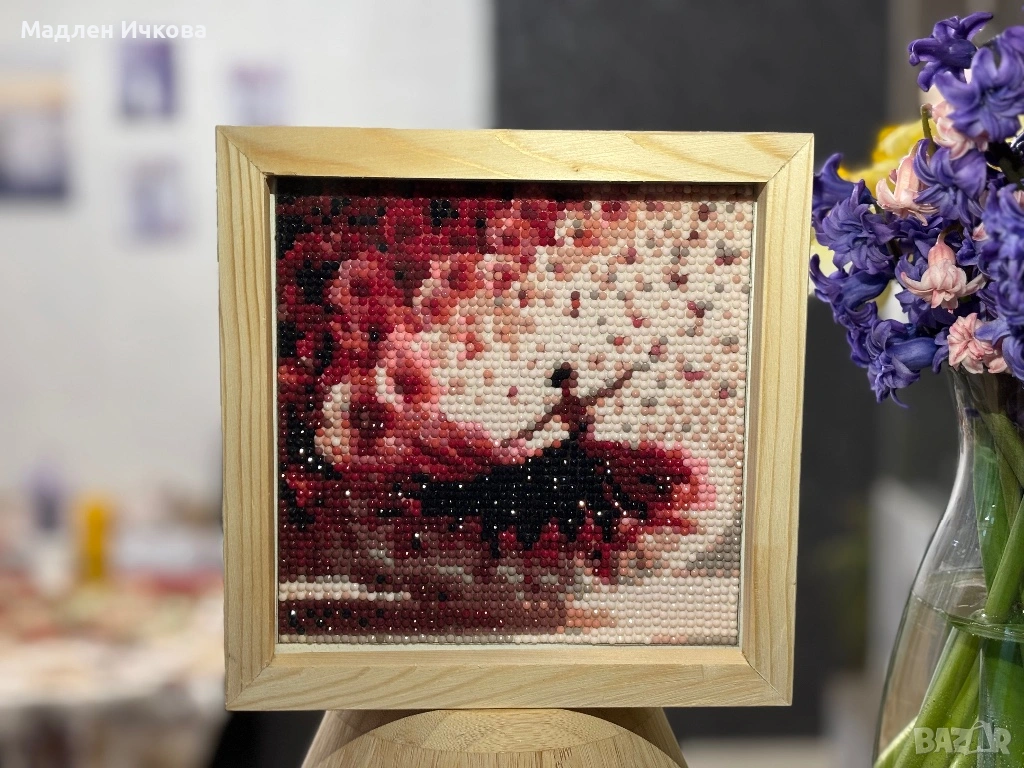 Продавам уникална картина, ръчна изработка, изпълнена с прецизната техника на диамантената мозайка. „Огнен танц“ е произведение, което носи енергия, изтънченост и стил, пресъздавайки магията на танца чрез хиляди блестящи кристали.