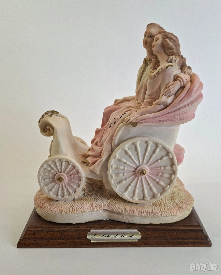 Фигура на млада двойка, седяща в елегантна открита колесница - L'Arte nel Mondo, Италия