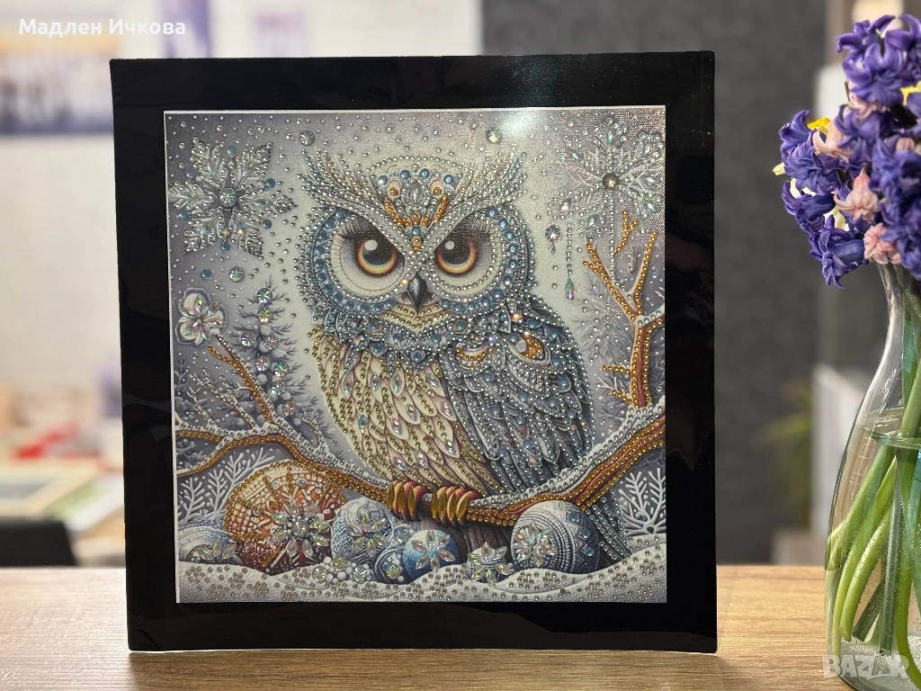 Ръчно изработен Диамантен Гоблен „Зимна сова“ – с иновативна МАГНИТНА рамка ❄️🦉