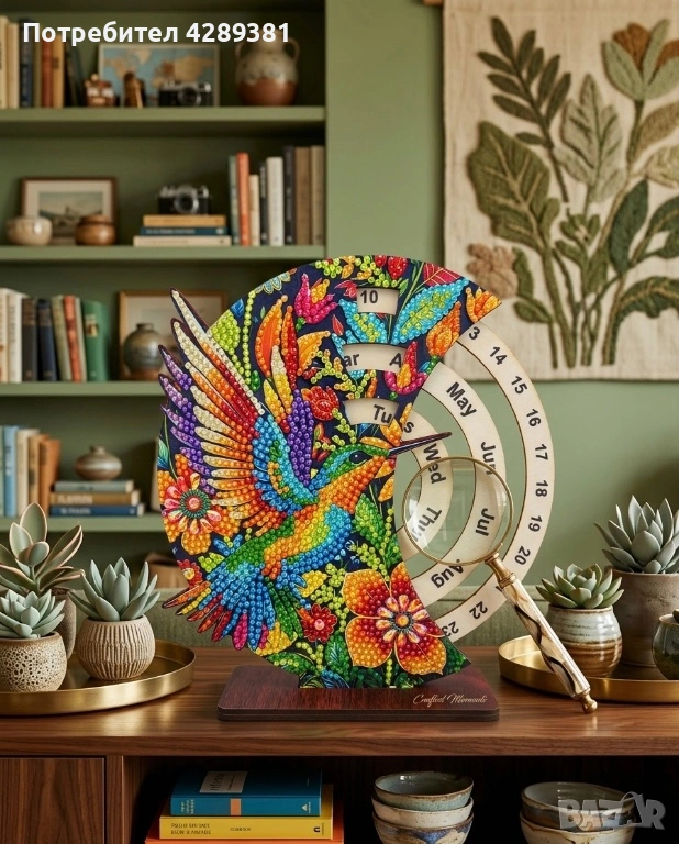 Вечен Календар „Диамантено Колибри“ – Ръчна изработка и стилен дизайн 🌸📅