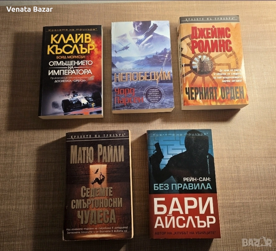 Продавам трилър книги от поредицата" Кралете на трилъра" на различни автори.