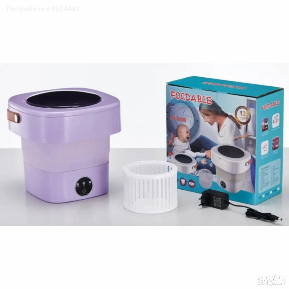 Мини сгъваема пералня с центрофуга – Компактна, мощна и идеална за всеки дом или пътуване - 12 литра → Обява 53965210