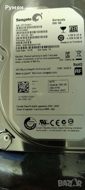 7. Твърд диск: HDD Seagate Barracuda 500 GB (ST500DM002) - 10€ .