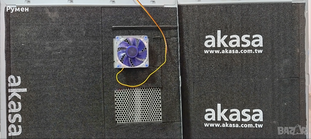 Сменен охладител на CPU с по-добри характеристики от box варианта, добавен допълнителен качествен и ниско шумящ страничен вентилатор. Добавена шумозащитна материя AKASA. Добавен регулатор на оборотите на страничния вентилатор.