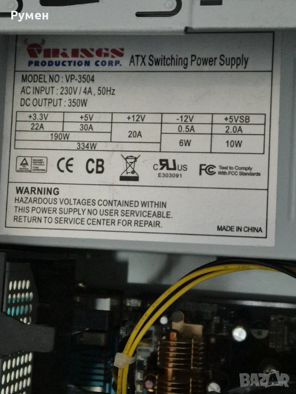 6. Захранване: Vikisgs, модел VP-3504, 350W, ATX 24pin;