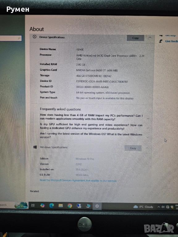 Компютър Athlon 64 X2,2GB RAM,SDD/HDD,GeForce 8600GT(512MB)