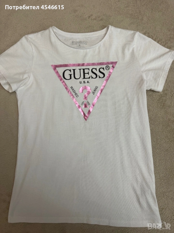 Тениска Guess по етикет за 16 годишни, но става за дамско Хс
