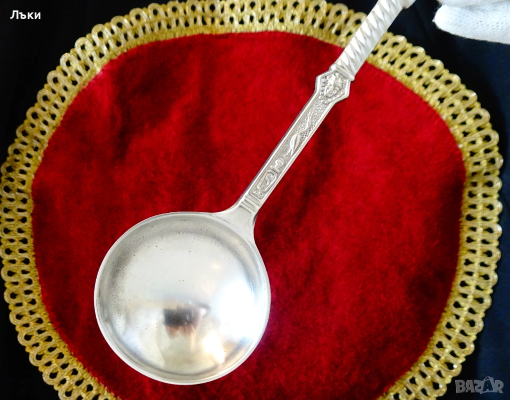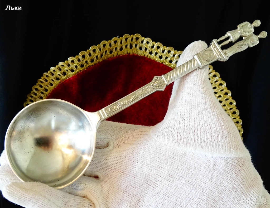 Стара немска калаена лъжица,майсторска ръчна изработка от