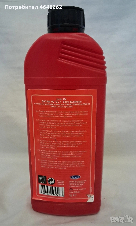 Масло Comma Oil SX 75W-90 GL- 4 1л, снимка 1 - Аксесоари и консумативи - 53965903 Масло Comma Oil SX 75W-90 GL- 4 1л, снимка 2 - Аксесоари и консумативи - 53965903 1/2