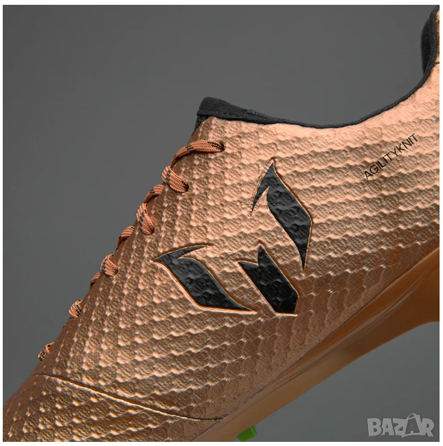 Неговото свръхчовешко ускорение се противопоставя на всички най-добри играчи. Неговата недосегаема пъргавина доминира над всички най-добри отбори. Сега единственото нещо, което Меси може да надмине, е самият той. Проектирани в сътрудничество с номер 10 на Барселона, Messi 16 са създадени, за да осигурят този момент, който ще промени играта, и да гарантира победа за отбора си. За превъзходен комфорт, горната част на обувките е с Agilityknit, който не изисква време за износване и се оформя според естествената форма на крака ви за персонализирано прилягане - гарантирайки перфектно докосване на топката. Monotongue на обувките осигурява отлично заключване и поддръжка, за да подобри пъргавината ви, докато ултралеката им подметка SprintFrame осигурява оптимална стабилност и сцепление върху твърди настилки.
