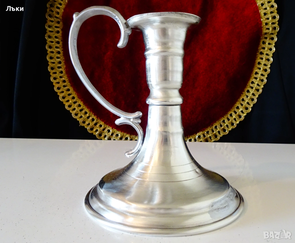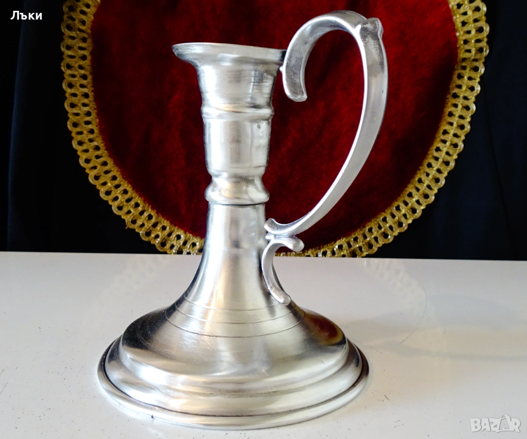Стар калаен свещник,майсторска ръчна изработка от 95% калай