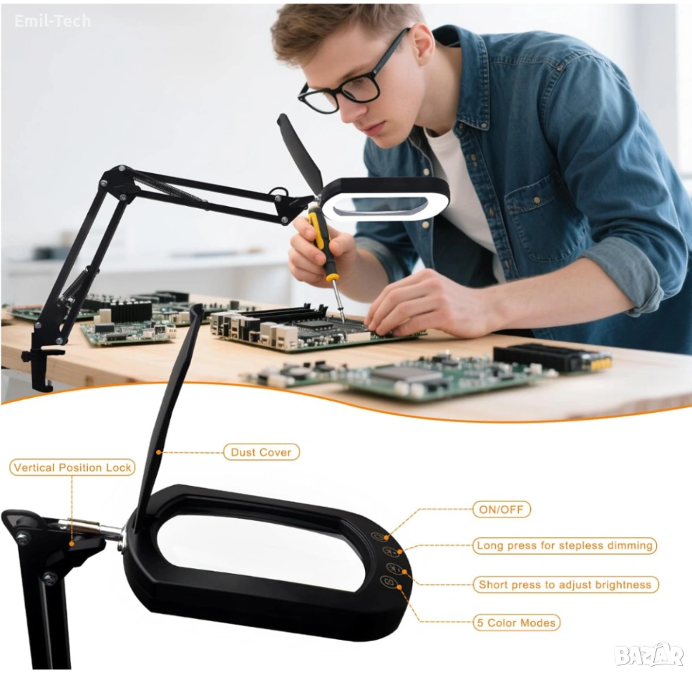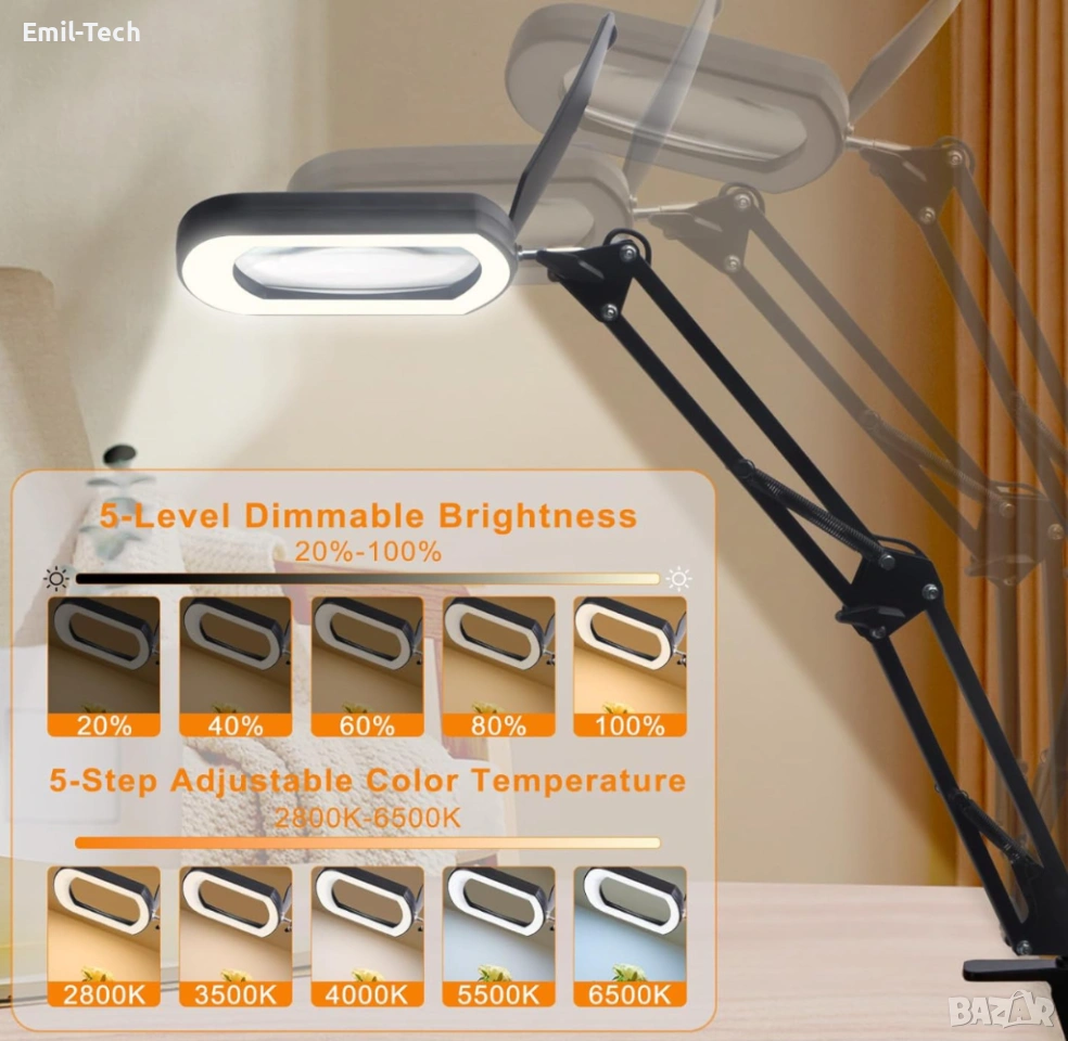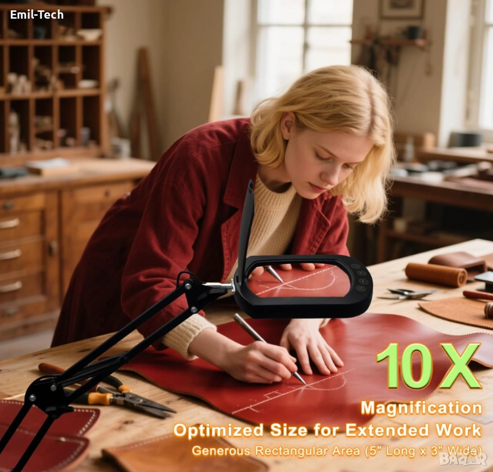 Продавам нова LED лампа с лупа 10X, неотваряна, в оригинална фабрична опаковка.