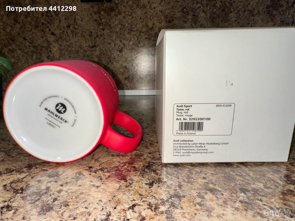 Продавам оригинална стилна чаша Audi Sport – перфектна за кафе, чай или подарък за фен на марката. Ефектен червен матов дизайн; Audi Sport лого; Удобна и стабилна дръжка; Подходяща за ежедневна употреба