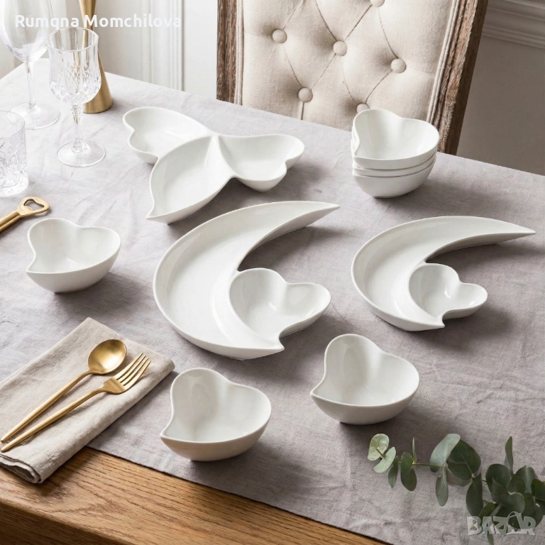 Луксозен сервиз от висококачествен порцелан – 9 части, Дизайн "Полумесец и сърце"