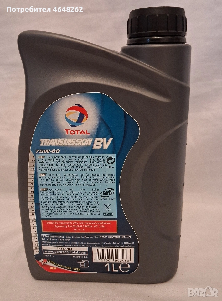 Масло Total Transmission BV 75W-80 1л, снимка 1 - Аксесоари и консумативи - 53966659 Масло Total Transmission BV 75W-80 1л, снимка 2 - Аксесоари и консумативи - 53966659 1/2