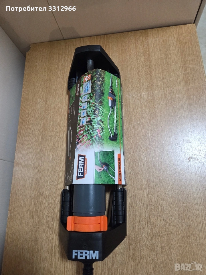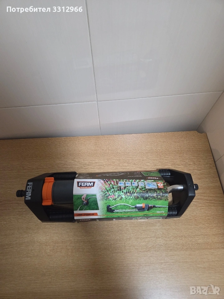 Градинска пръскачка Ferm .Разпръсквач за поливане на райграс и цветя .Може да се настройва посоката на пръскане .Максимална площ за поливане 90-236m²Налягане на водата - 1.2-6 бара
