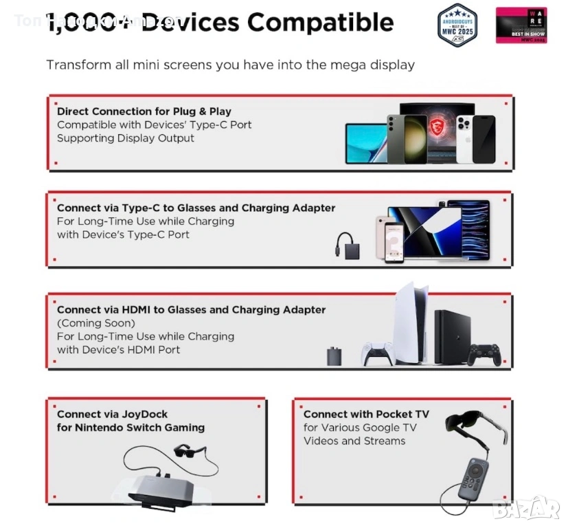 • RayNeo Air 3S ви позволява мигновено да трансформирате вашия смартфон, таблет или лаптоп в гигантски преносим екран