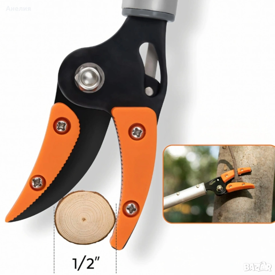 Приложение: подрязване на дървета и храсти, бране на плодове, оформяне на живи плетове и работа на труднодостъпни места