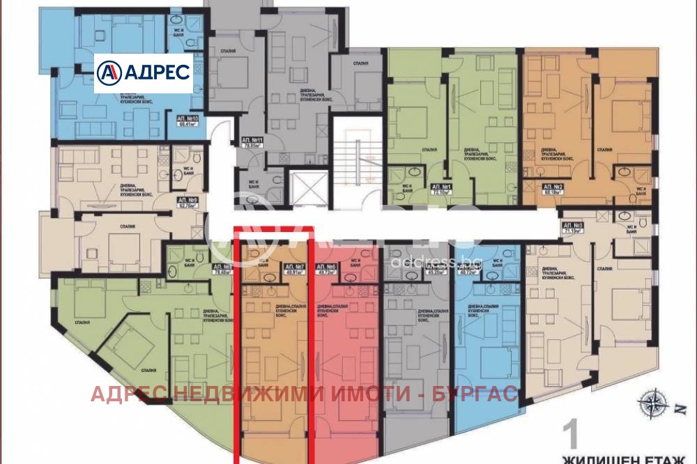 Едностаен апартамент в красива и функционална сграда в гр. Поморие. На 500 м от морето. Б лизо до центъра и до комплексите за рехабилитация. Площ на имота 49,91 кв. м., етаж 1 от 6, асансьор. Състои се от антре, дневна с кухненски кът и трапезария, спален кът с тераса, баня и тоалетна. Към всеки имот може да бъде закуено складово помещение, паркомясто или гараж.