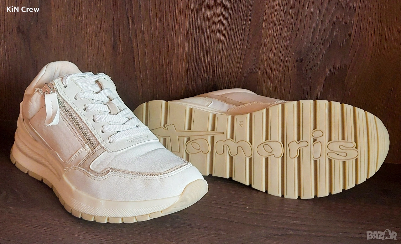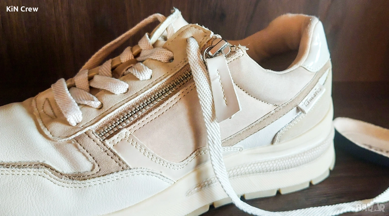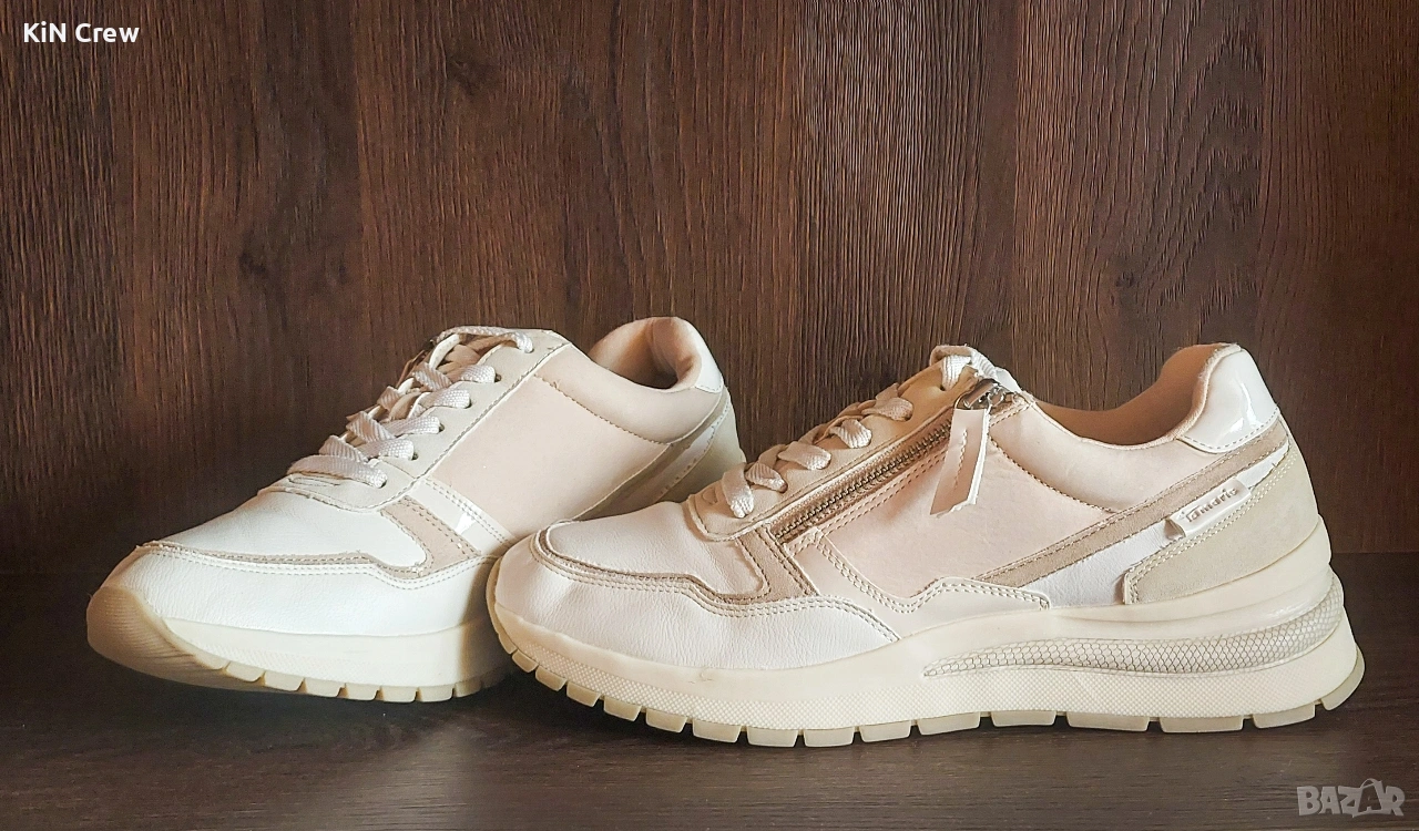 Продавам спортни / ежедневни дамски маратонки Tamaris в бял цвят, с модерен и изчистен дизайн, размер - 41 номер.