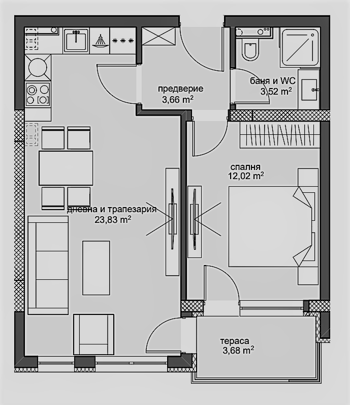 Оферта 1-4618, Цени на инвеститор. Предлагаме Ви един нов проект с различни по големина, изложение апартаменти. Комуникативна и удобна градска локация с бърз достъп до централен булевард. Квартала е предпочитан за живеене заради добрата инфраструктура, наличие на търговски комплекс и парк 'Отдих и култура' на пешеходно разстояние и други удобства - заведения за хранене и напитки, зеленчуков пазар, аптеки. Разпределение на помещенията: светла дневна с кухненски бокс и излаз на тераса, спалня също с излаз на обща тераса , баня с тоалетна и антре. Към апартамента принадлежи избено помещение. Степен на завършване: стени и таван - шпакловка, под - циментова замазка, ВиК до тапа, ел. инсталация до фасунга и ключ, PVC дограма и блиндирана входна врата. Възможност за закупуване на гараж или парко място. Препоръчваме това жилище при избора Ви на нов дом или като подходящ инвестиционен инструмент. Гарантираме, че ще получите необходимото внимание и компетентно съдействие. Ние ще Ви предложим повече отношение и индивидуален подход към нужди Ви. Вашето доверие това е главното, към което се стремим в работата ни с КЛИЕНТА. За нас не е достатъчно просто да Ви предложим имот, а чрез индивидуален подход да сме максимално полезни в търсенето на най-доброто решение за Вас. Ние работим с голям кръг от инвеститори, строители и колеги и правим всичко възможно за да покрием с максимално изчерпателна информация и оферти зададените от Вас критерии. За повече подробности сме на разположение на тел.: 0887900445; http://previlex.imot.bg