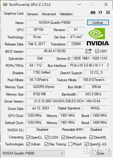 Видеокарта Nvidia Quadro P4000 8Gb DDR5, 256 bit, снимка 1 - Видеокарти - 53967873 Видеокарта Nvidia Quadro P4000 8Gb DDR5, 256 bit, снимка 2 - Видеокарти - 53967873 Видеокарта Nvidia Quadro P4000 8Gb DDR5, 256 bit, снимка 3 - Видеокарти - 53967873 1/3