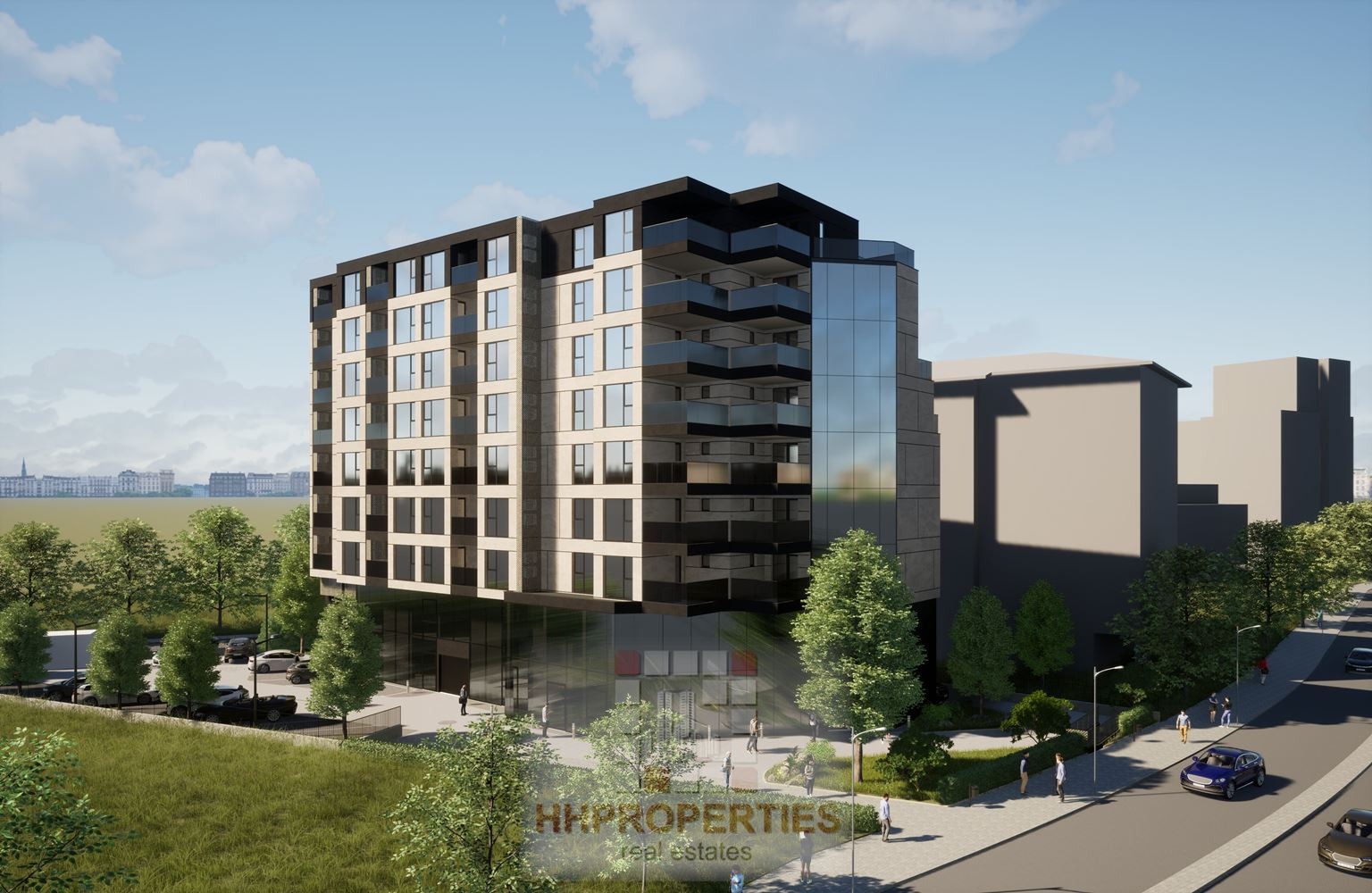 🏡 Сградата впечатлява с модерен архитектурен почерк, при който еркери, балкони и прозоречни отвори са комбинирани в хармонична фасадна композиция. Изпълнена е с фасадна система от стъклокерамика, HPL, композитни панели и естествен камък, интегрирани в окачена вентилируема фасада решение, гарантиращо не само стил, но и дълготрайност.