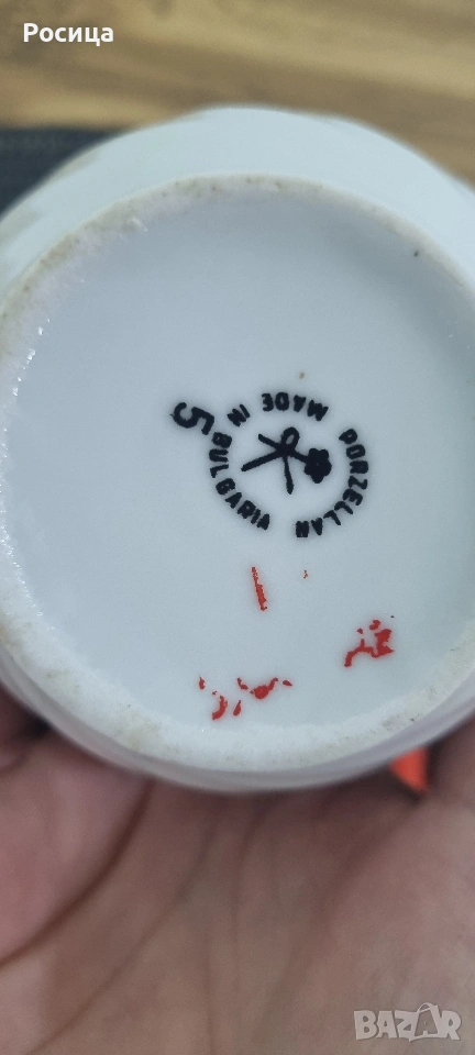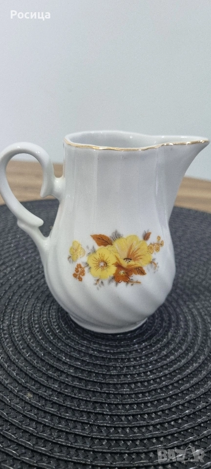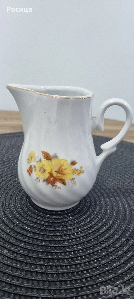 Красива порцеланова кана с изящни жълти цветя и златен кант. Изделието е в отлично състояние
