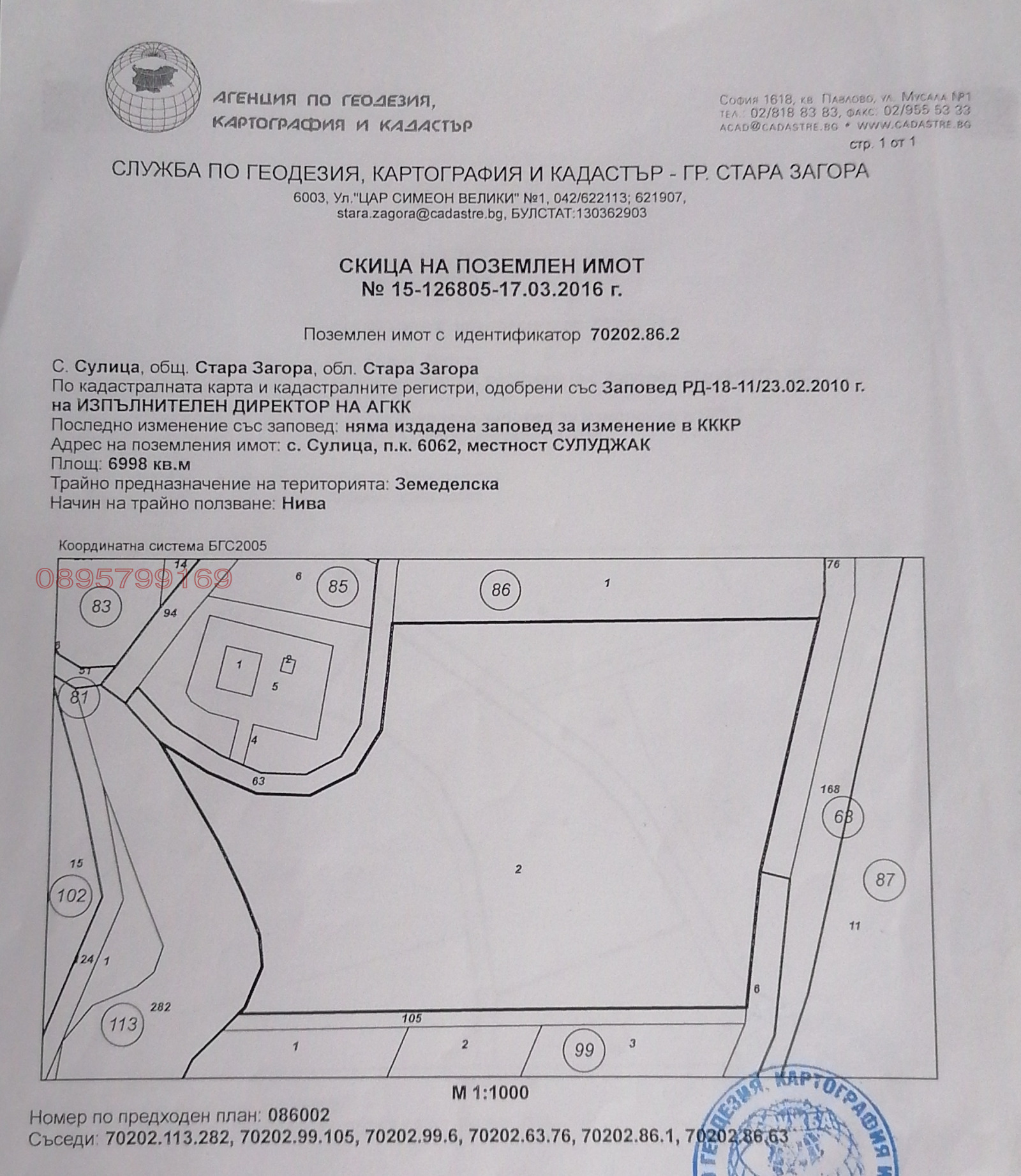 Нива 6998 м2 с индефикатор 70202.86.2