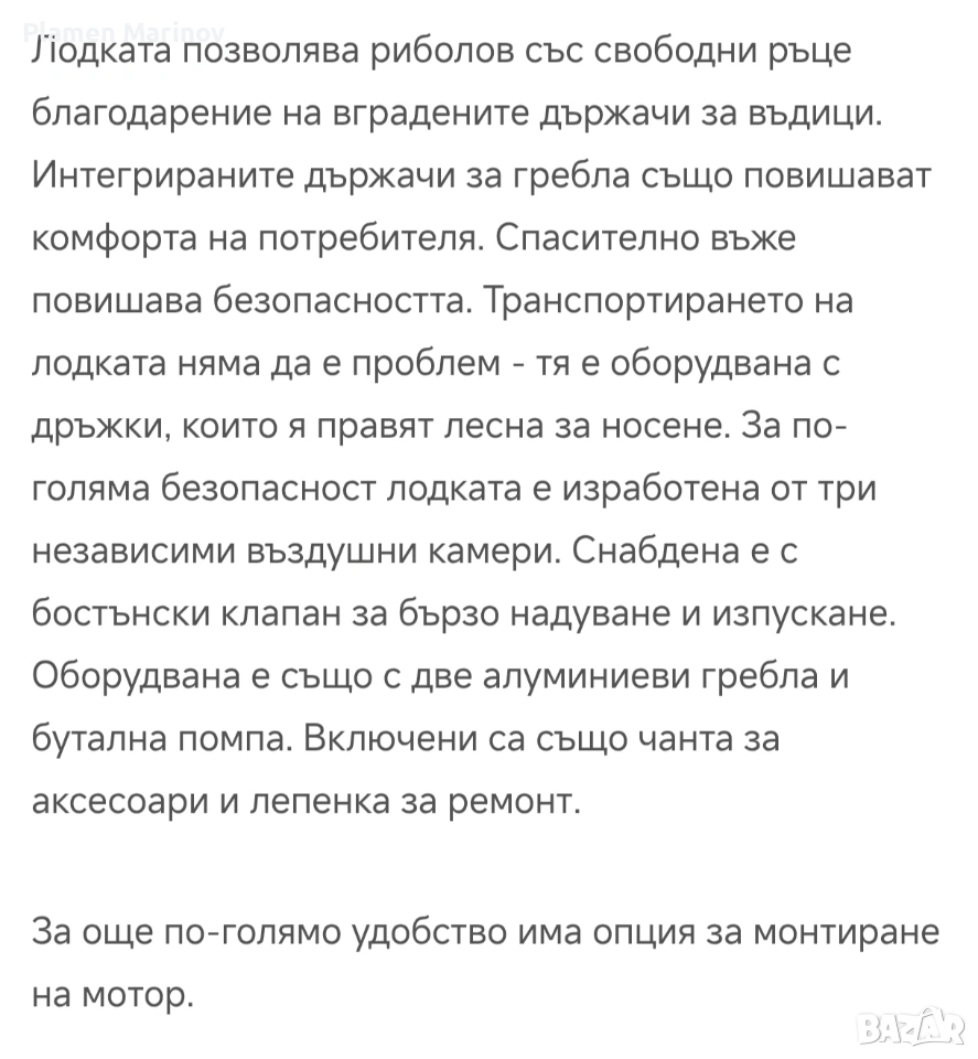 Надуваема 5 места лодка с извънбордов електрически мотор , снимка 1 - Водни спортове - 53968316 Надуваема 5 места лодка с извънбордов електрически мотор , снимка 2 - Водни спортове - 53968316 Надуваема 5 места лодка с извънбордов електрически мотор , снимка 3 - Водни спортове - 53968316 Надуваема 5 места лодка с извънбордов електрически мотор , снимка 4 - Водни спортове - 53968316 Надуваема 5 места лодка с извънбордов електрически мотор , снимка 5 - Водни спортове - 53968316 Надуваема 5 места лодка с извънбордов електрически мотор , снимка 6 - Водни спортове - 53968316 Надуваема 5 места лодка с извънбордов електрически мотор , снимка 7 - Водни спортове - 53968316 Надуваема 5 места лодка с извънбордов електрически мотор , снимка 8 - Водни спортове - 53968316 Надуваема 5 места лодка с извънбордов електрически мотор , снимка 9 - Водни спортове - 53968316 Надуваема 5 места лодка с извънбордов електрически мотор , снимка 10 - Водни спортове - 53968316 Надуваема 5 места лодка с извънбордов електрически мотор , снимка 11 - Водни спортове - 53968316 Надуваема 5 места лодка с извънбордов електрически мотор , снимка 12 - Водни спортове - 53968316 Надуваема 5 места лодка с извънбордов електрически мотор , снимка 13 - Водни спортове - 53968316 Надуваема 5 места лодка с извънбордов електрически мотор , снимка 14 - Водни спортове - 53968316 Надуваема 5 места лодка с извънбордов електрически мотор , снимка 15 - Водни спортове - 53968316 Надуваема 5 места лодка с извънбордов електрически мотор , снимка 16 - Водни спортове - 53968316 1/16